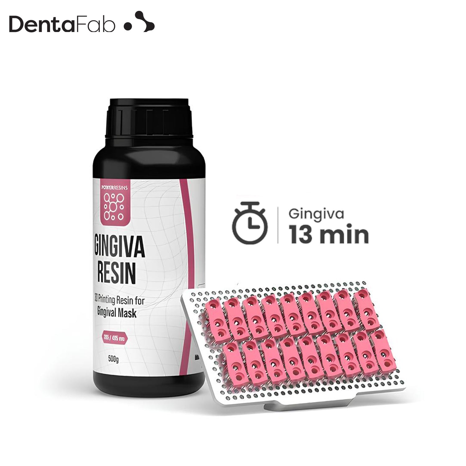 PowerResins Gingiva Resin is a flexible resin developed for producing soft gingival masks for model printing. It has high dimensional stability and can be easily shaped and adjusted to achieve a perfect fit for implant models.