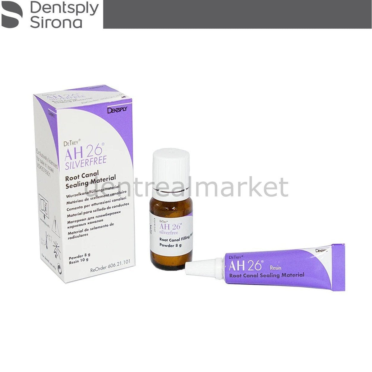 AH 26 powder and resin are mixed to produce a root canal filling material of excellent sealing capacity. As a result of its close adaptation to the root canal walls and its very small contraction during setting, AH 26 allows tightly sealing root canal obturation of excellent tissue compatibility.