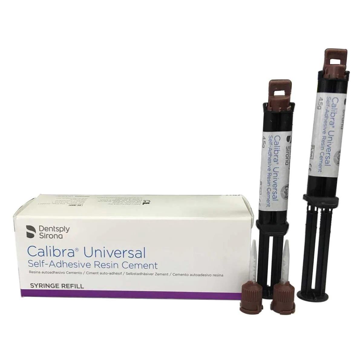 Calibra Universal is a two-component, double-curing, high-strength, self-adhesive resin cement containing fluoride. It combines aesthetic shading with a self-etching adhesive, without a separate dentin/enamel adhesive bonding agent/system.