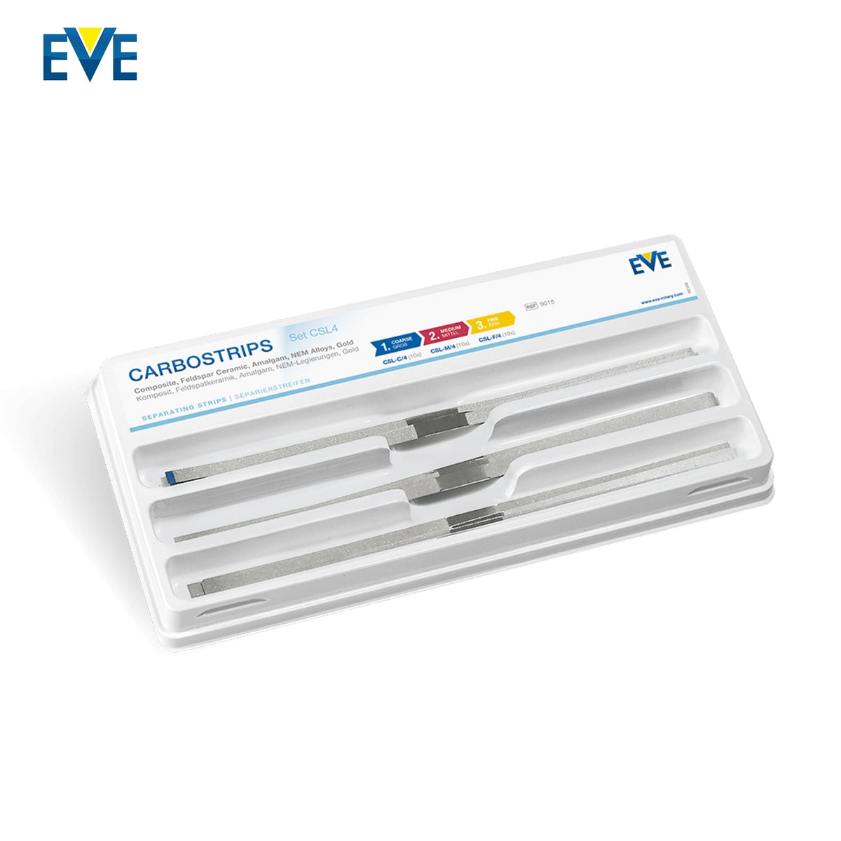 The 9018 Strip Set is specially designed for precise surface correction and polishing of various dental materials. This set, which provides effective use on amalgam, feldspathic ceramic, gold, composite, and NEM alloys, consists of strips with different grit levels.
