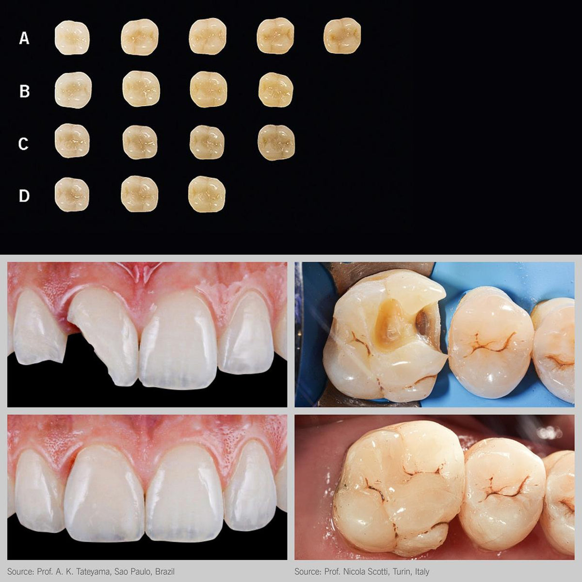 Charisma Diamond adapts to the colour of the surrounding tooth structure for an outstandingly natural look. What’s more, the Charisma Diamond layering technique is a distinct aesthetic advantage and ensures virtually undetectable restorative margins. You easily achieve very good results with ONE Shade layering for simple cases and excellent results using the multi-layer technique.