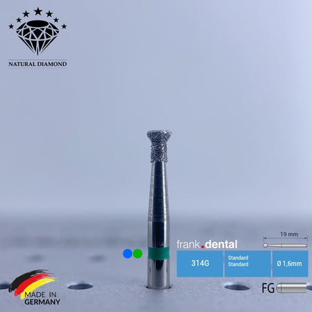Diamond dental burs: Diamond is the hardest natural material known to man and, therefore, is the material of choice when it comes to wearing down the hardest tissue in the human body: tooth enamel. Diamond burs have a steel shank and an active part coated with natural or synthetic diamond powder. The vast majority of commercially available dental burs are made of synthetic diamond and it is less common to come across natural diamond burs. Manufacturers who use natural diamond usually emphasise this characteristic, as it gives the burs greater quality, efficiency and durability. Of course, the cost of a natural diamond burr is higher than that of a synthetic diamond burr.