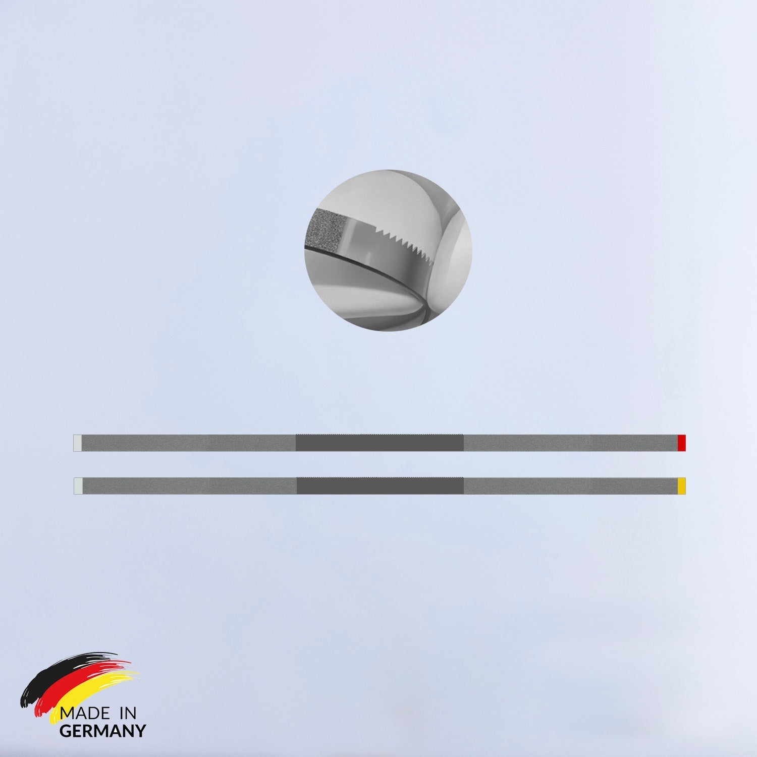 Removal of excess material from the proximal areas of fillings - materials such as composites, acrylics, glass ionomer cements and amalgams to shape proximal areas of any filling