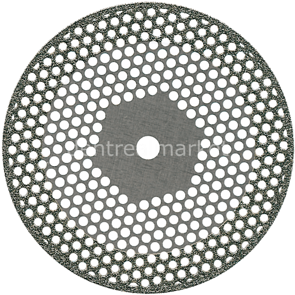 A double sided diamond disc designed for separating and shaping the interproximal, marginal and facial surfaces of enamel or composite, acrylic and ceramic restorations. Discs are electro plated and riveted to maintain a long instrument life. Comes attached to mandrel.