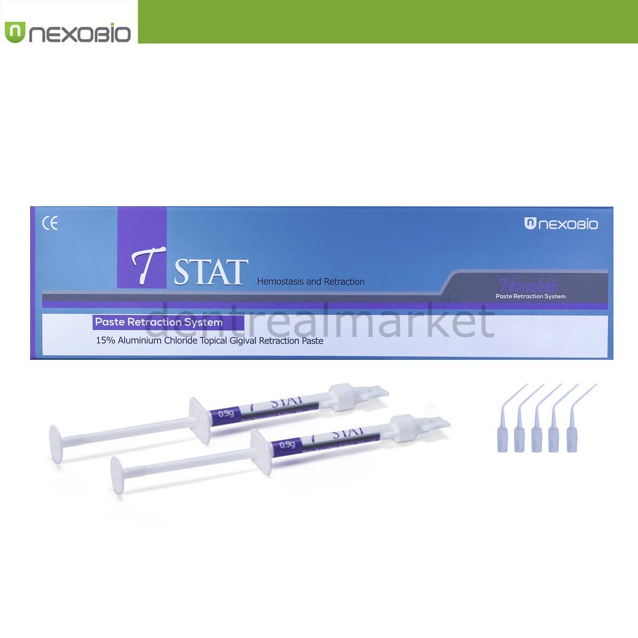 An alternative to the dental retraction cord, T Stat is an adhesive paste used for all procedures requiring gingival retraction, including impressions, seating of restorations, insertion of rubber dams and restoration of class II, III and V cavities. It is an alternative to a threading cord.