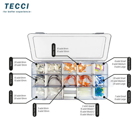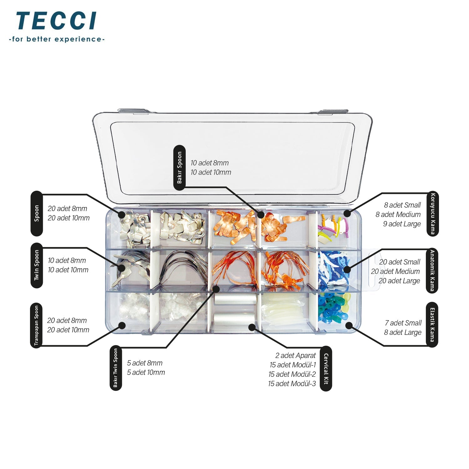 Tecci Anterior RestoKit is a specially designed anterior regional matrix system set that allows the creation of ideal contact points by ensuring the perfect compatibility of bands, wedges, and retainers in Class-II, Class-IV, and Class-V anterior restorations.