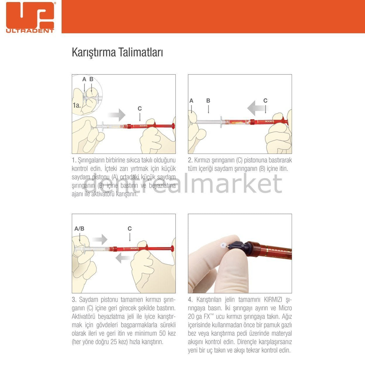 IMPORTANT NOTE: Once mixed, Opalescence™ Boost™ gel can be refrigerated for 10 days. Before disposing of syringes, draw water into the syringe and squeeze the liquid into the sink. Repeat this process several times before disposing of the syringe. Be sure to rinse all used gauze pads with water.